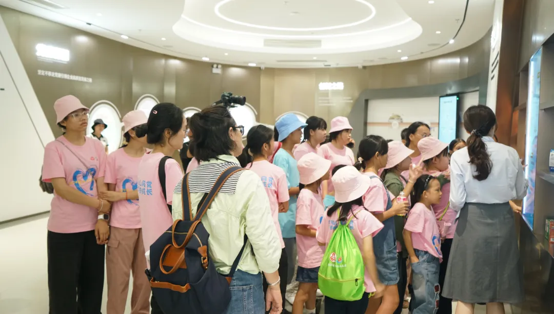 紧接着,孩子们来到了建党百年庆典红旗——070号红旗前。讲解员讲述了德扑之星药业集团与庆典红旗的深厚渊源。孩子们听得津津有味,眼中闪烁着对党和国家的热爱与敬仰。